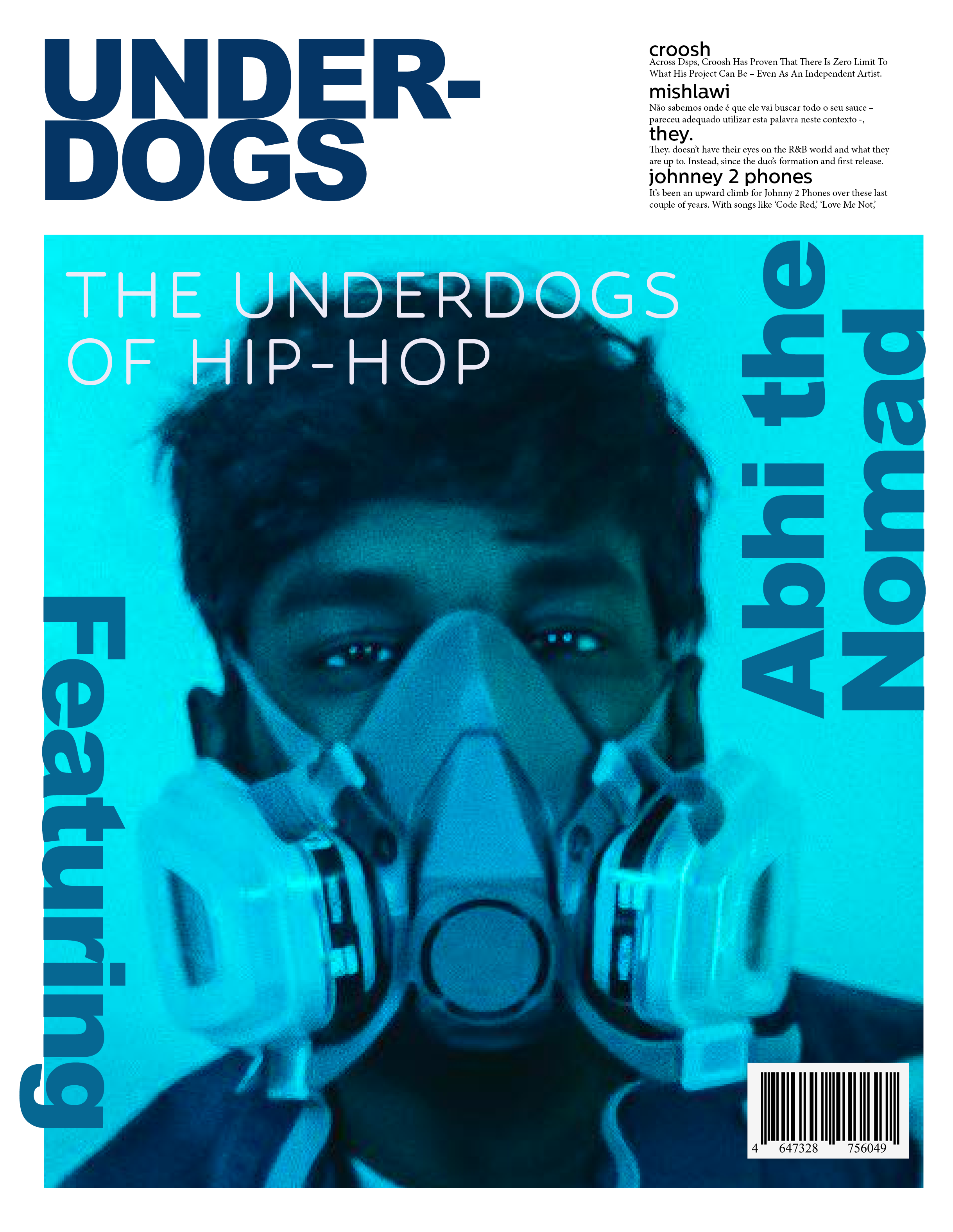 This magazine features the Underdogs of Hip-Hop: Artists that haven’t yet recieved the recognition they deserve. Featured is Abhi the Nomad, who has released three full-length albums, Marbled, Modern Trash, and, most recently, Abhi vs the Universe, as well as six extended plays.